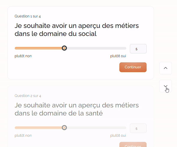 Quelques questions simples cerneront vos besoins et envies et vous aiguilleront vers une sélection de fiches métier vous correspondant.